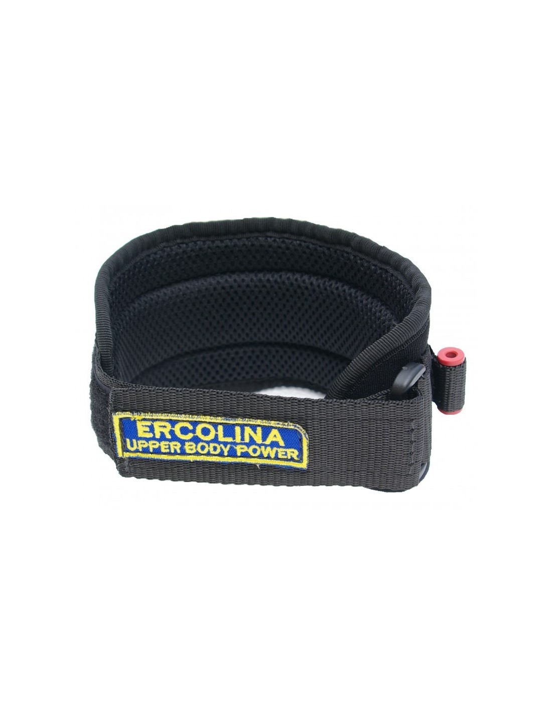 Regolabile con velcro e munita di attacco per l'aggancio rapido e/o cordino di trazione.